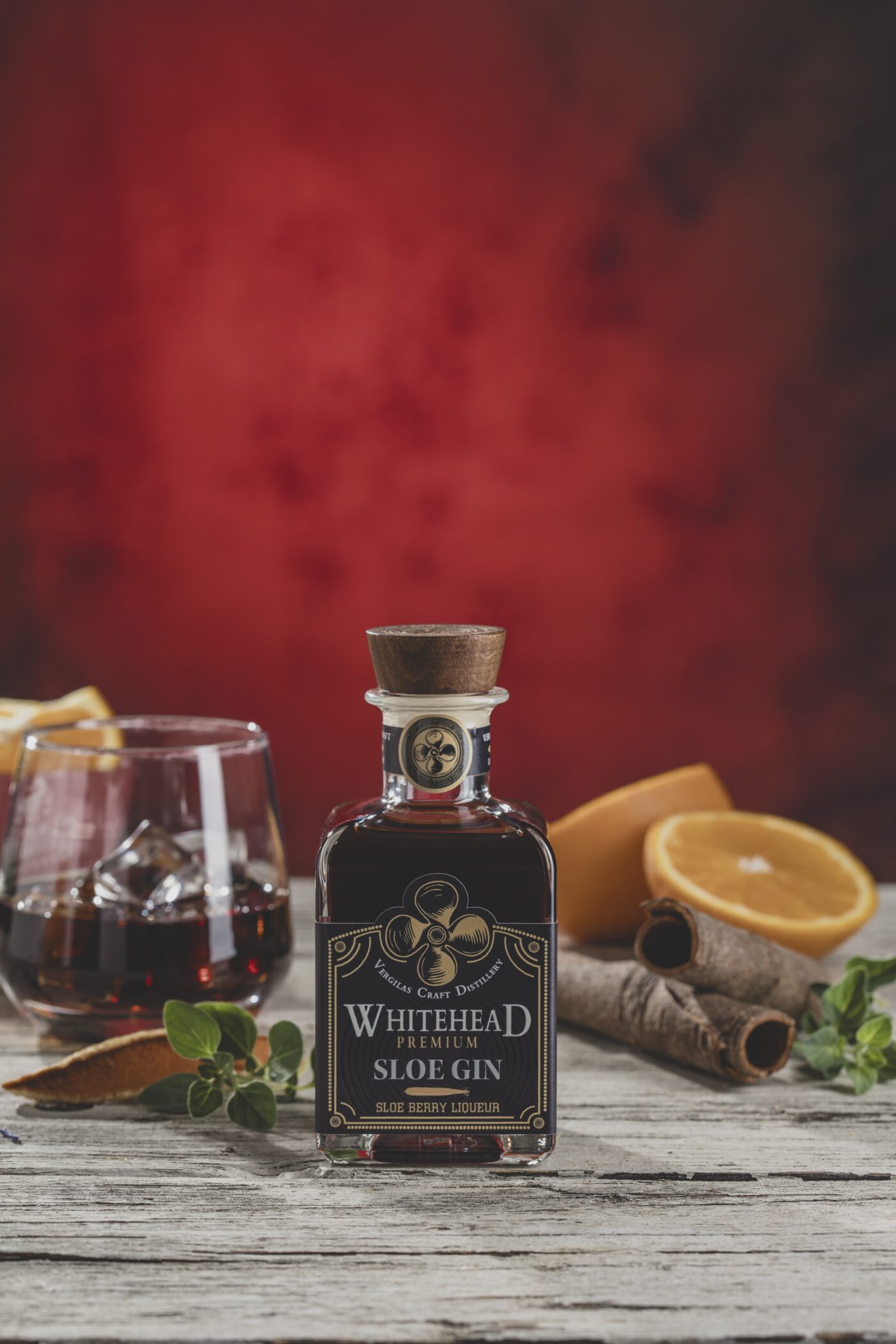 WHITEHEAD PREMIUM SLOE GIN kao bazu koristi klasični gin s dodatkom bobica crnog trna koji nalikuju divljoj šljivi. Dodavanjem bobica crnog trna postiže se slatkasto-kiselkasta nota koja donosi novi, duboki okus.